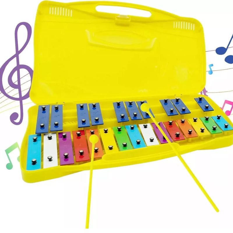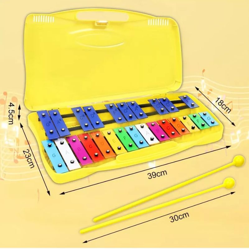 🎶 El metalófono ha sido diseñado para inspirar y cautivar a los más pequeños . Con 25 teclas de colores vibrantes, cada una representando una nota musical única, pueden explorar y experimentar con sonidos armoniosos. Las teclas de colores hacen que aprender a tocar sea aún más entretenido, estimulando la creatividad y el aprendizaje musical. 🎹