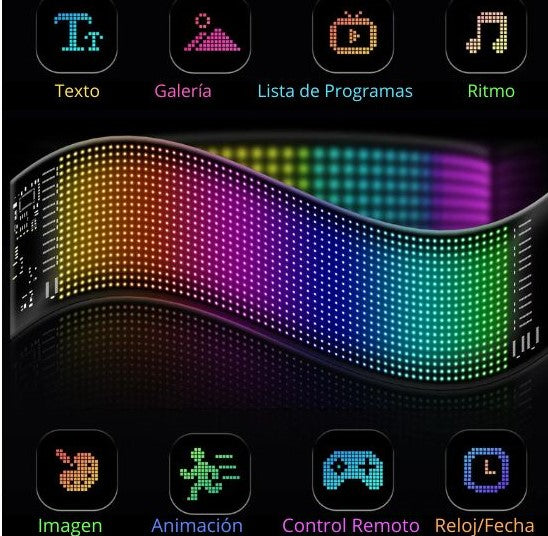 La led es ligera y delgada, usa cuentas de lámparas RGB, diseño de tablero flexible, se puede doblar y plegar a voluntad.