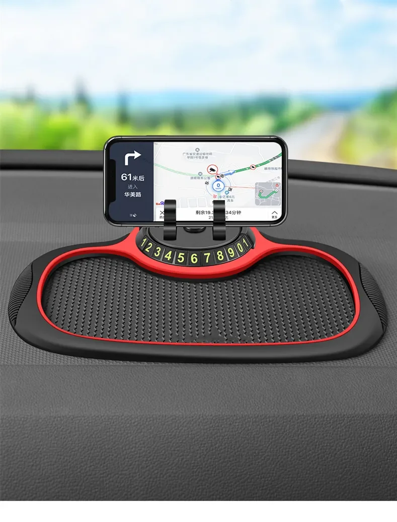 Esta almohadilla para salpicadero de automóvil tiene muchas funciones. No solo es un soporte para teléfono móvil, sino que también puede almacenar varias cosas. También tiene una placa de número de estacionamiento, que es muy conveniente de usar.
